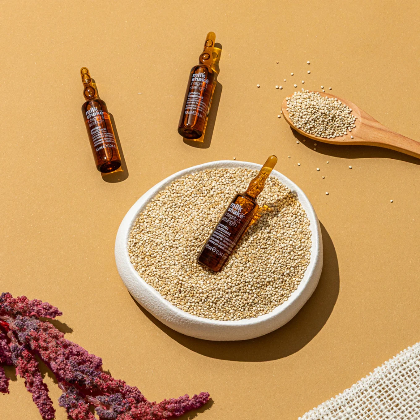 Milk Shake Integrity Repairing Hair, este un tratament de reparare a proteinelor cu aminoacizi, ideal pentru restructurarea și refacerea părului deteriorat și tratat chimic, lăsându-l moale la atingere și radiant. Conține extractul organic murumuru, care oferă o acțiune de hidratare și hrănire. Ingredientul exclusiv este Integrity 41, care îmbunătățește stabilitatea culorii, lăsând părul sănătos și neted.